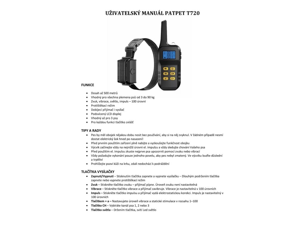 Náhradní Vysílačka pro elektrický obojek PatPet T720