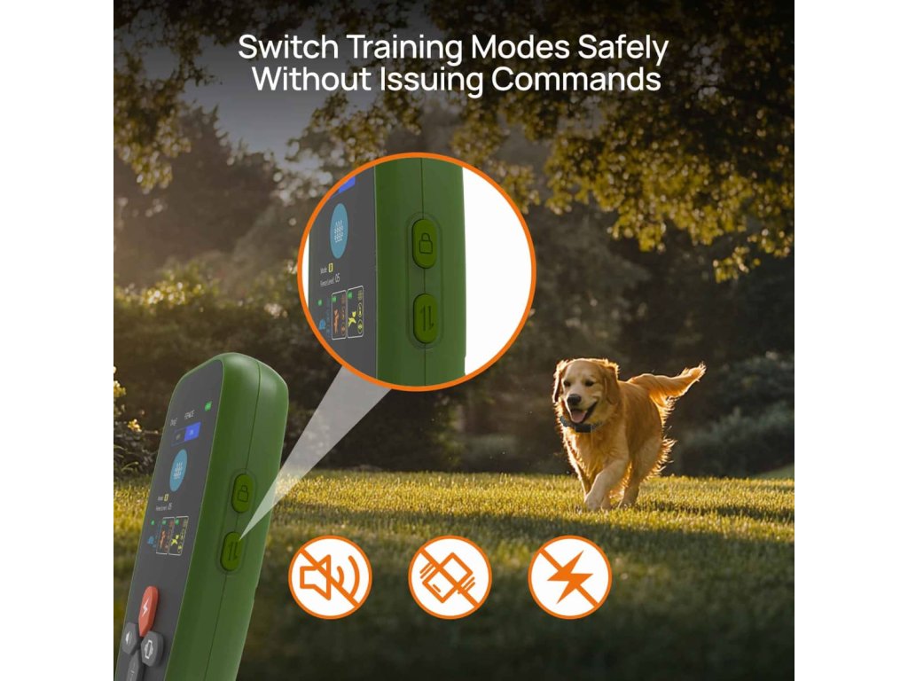 Dosah výcviku až 1000 metrů poskytuje dostatečnou kontrolu i při výcviku v otevřeném terénu. Samozřejmostí je bezpečnostní zámek, který zabrání náhodné aktivaci impulzu.